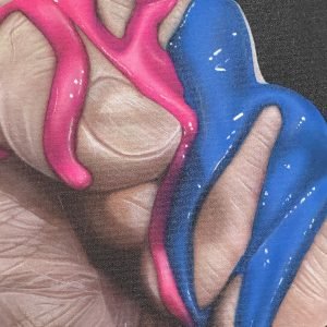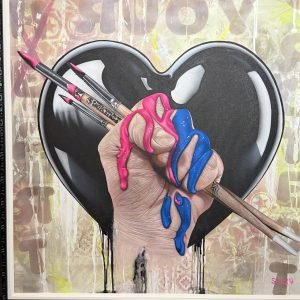 Graduating from a Jekyll and Hyde influence early in his career, in which he divided his time between family portraits and airbrush design work on helmets and Harleys, Stickman had the epiphany to combine both styles while reading “According to the Rolling Stones”. Two weeks later he finished his first canvas portrait of Mick Jagger, aptly titled “Please allow me to introduce myself”, which forever changed the direction of his career in the art world.